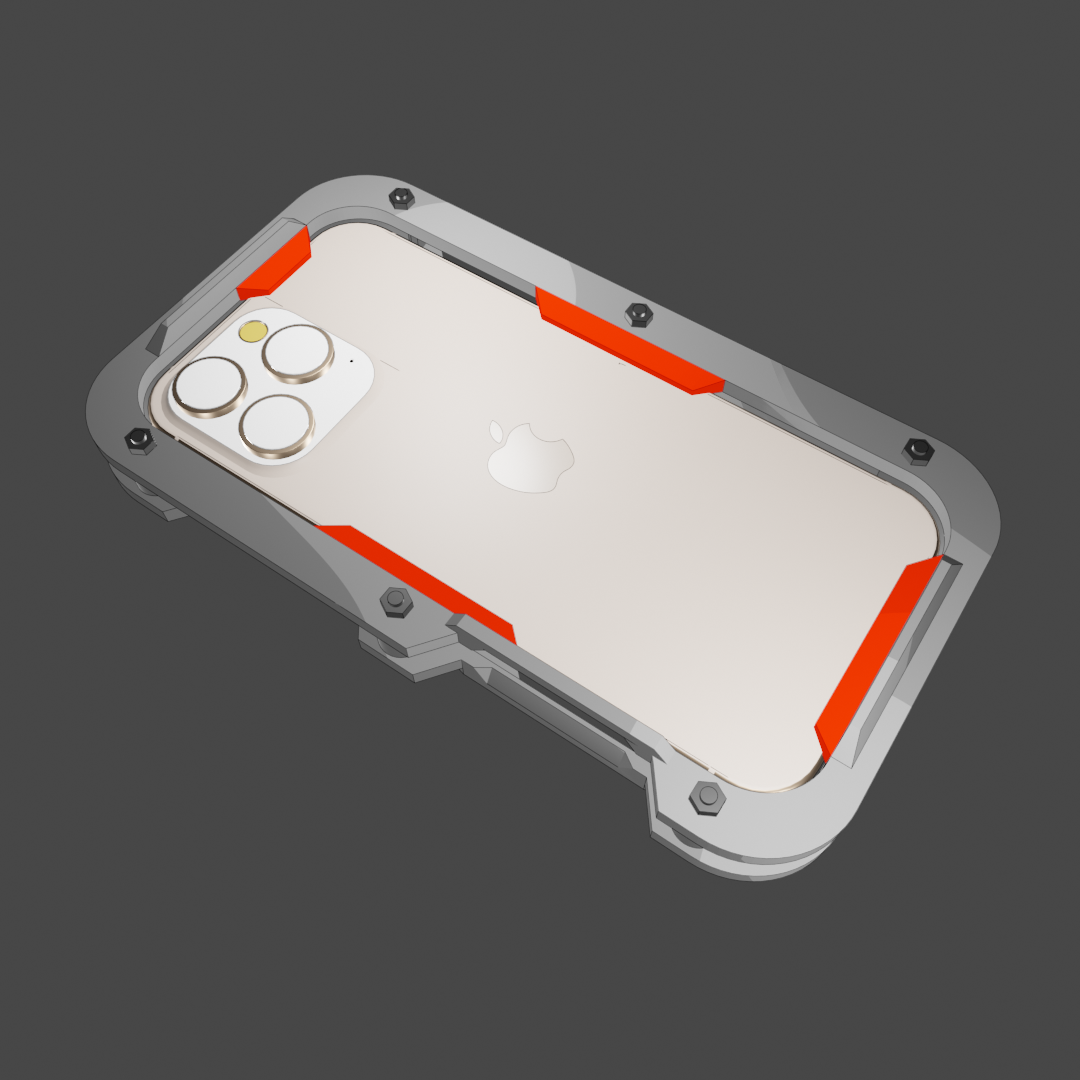 The Futura Case comes in three color options. Metalized gray. Army green. Pink. Available for iPhone 16 Pro Max. 3D printed with high resistance Nylon filaments. Direct Orders.